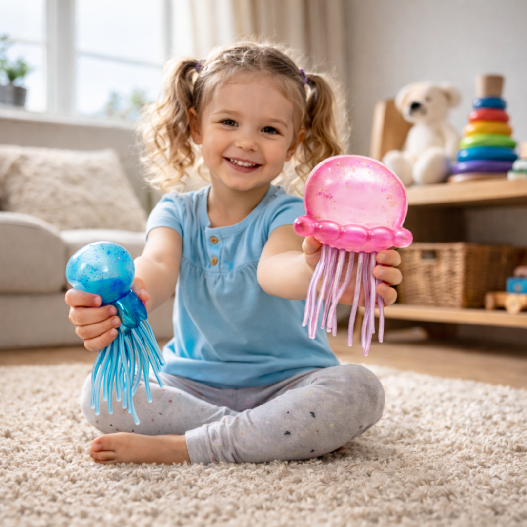 Nuestra medusa sensorial combina suavidad, seguridad y estimulación en un solo juguete. Su textura flexible y agradable al tacto invita a explorar, favoreciendo el desarrollo sensorial y la coordinación desde edades tempranas.